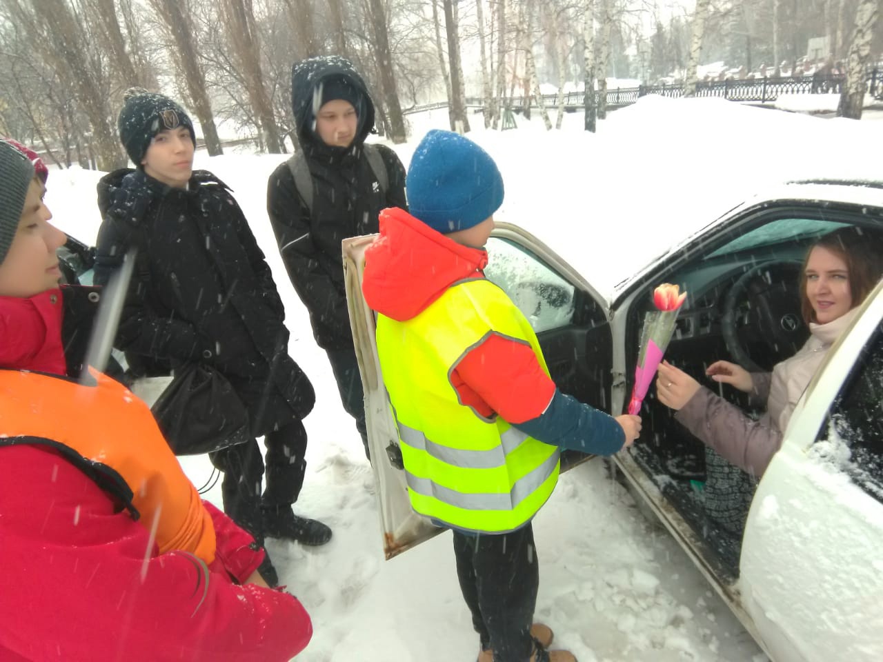 Отряд ЮИДовцев МОБУ СОШ с.Рощинский, поздравляет всех женщин, особенно женщин-автомобилистов с 8 МАРТА и присоединяется к акции "Вам, любимые!"