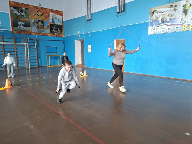 Для поддержки и равного количества участников в эстафетах приняла участие и мама ученицы.