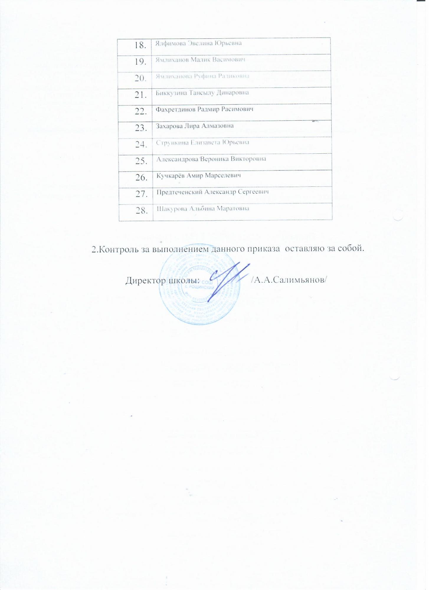 Приказ о зачислении в 1 класс на 2021-2022 учебный год (№20 от 01.07.2021) (продолжение)