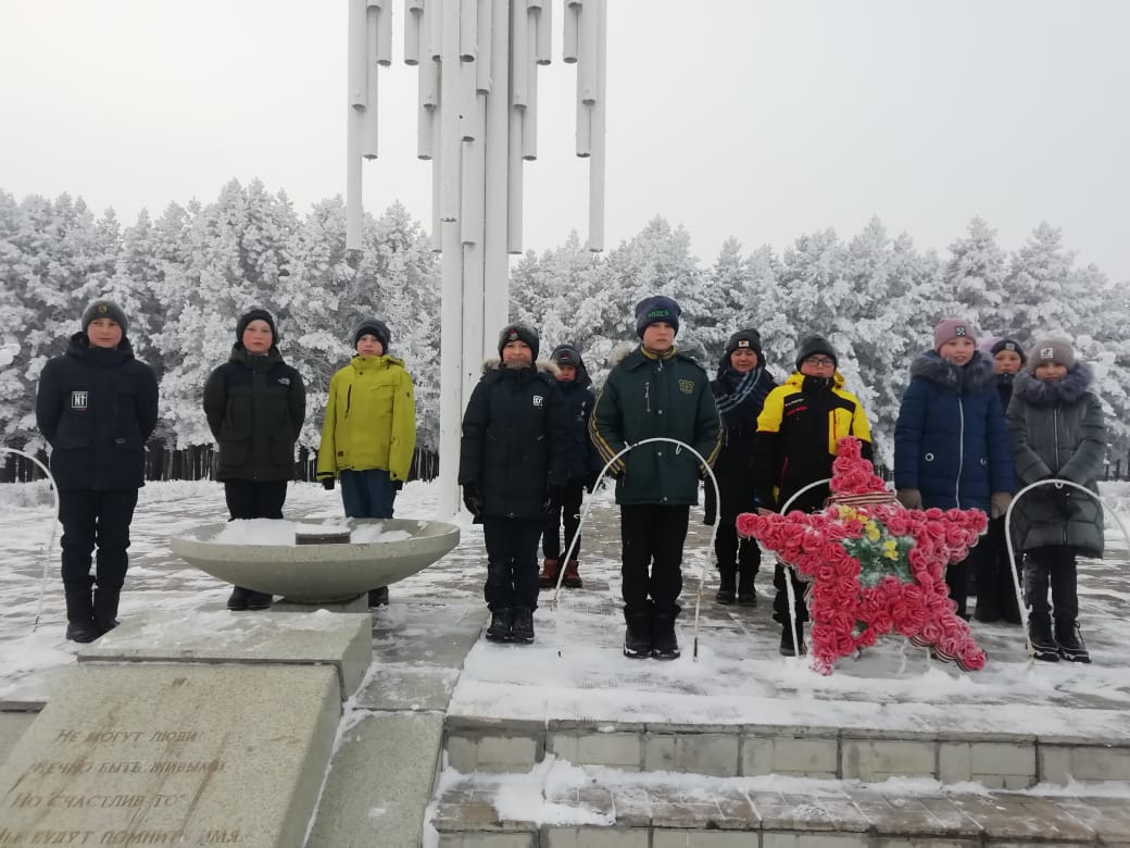 В школе прошли классные часы и минута молчания, которой учителя и учащиеся почтили память воинов минутой молчания.